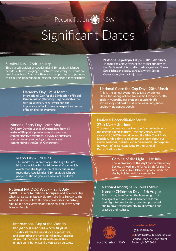 Each year there are dates that recognise important historic events, call Australians to action or celebrate the culture and contribution of Aboriginal and Torres Strait Islander people.